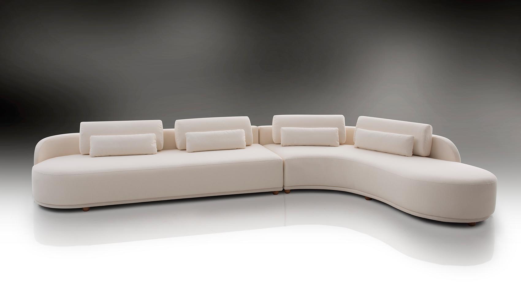 Seu formato orgânico, inspirado na natureza, se adapta harmoniosamente a decorações clássicas e modernas. Com opções de personalização de medidas, cores e tecidos, você pode criar um sofá que reflita seu estilo único. O encosto com almofadas soltas em formato arredondado adiciona conforto e elegância.