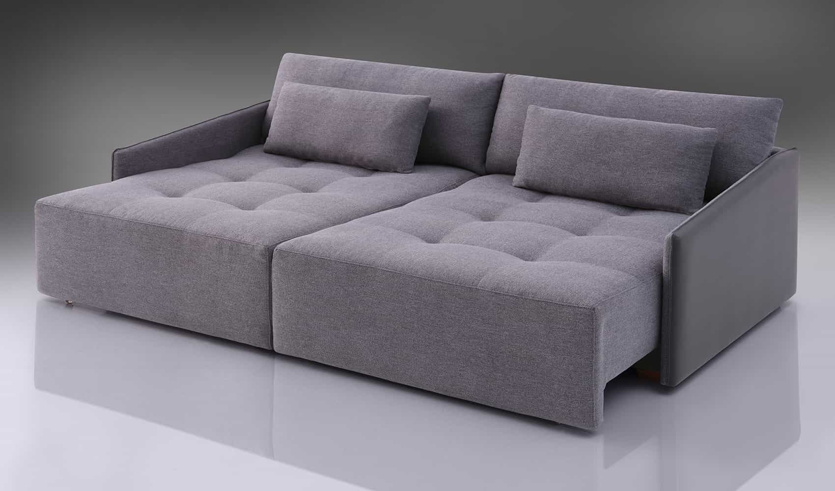 Seu design charmoso inclui braços fi nos e almofadas soltas para o uso diário, transformando-se em uma cama confortável quando aberto.